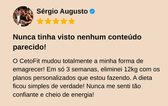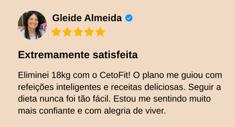 Com base nas suas informações pessoais e objetivos criamos um plano 100% personalizado para você usar o CetoFit. Nossa abordagem estratégica foi feita para que você consiga potencializar sua perda de peso em 4 semanas ou menos, respeitando seu estilo de vida, sua rotina e o que você gosta de comer.