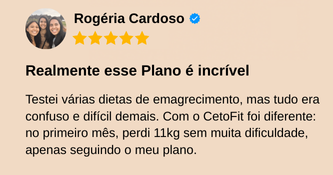 Com base nas suas informações pessoais e objetivos criamos um plano 100% personalizado para você usar o CetoFit. Nossa abordagem estratégica foi feita para que você consiga potencializar sua perda de peso em 4 semanas ou menos, respeitando seu estilo de vida, sua rotina e o que você gosta de comer.